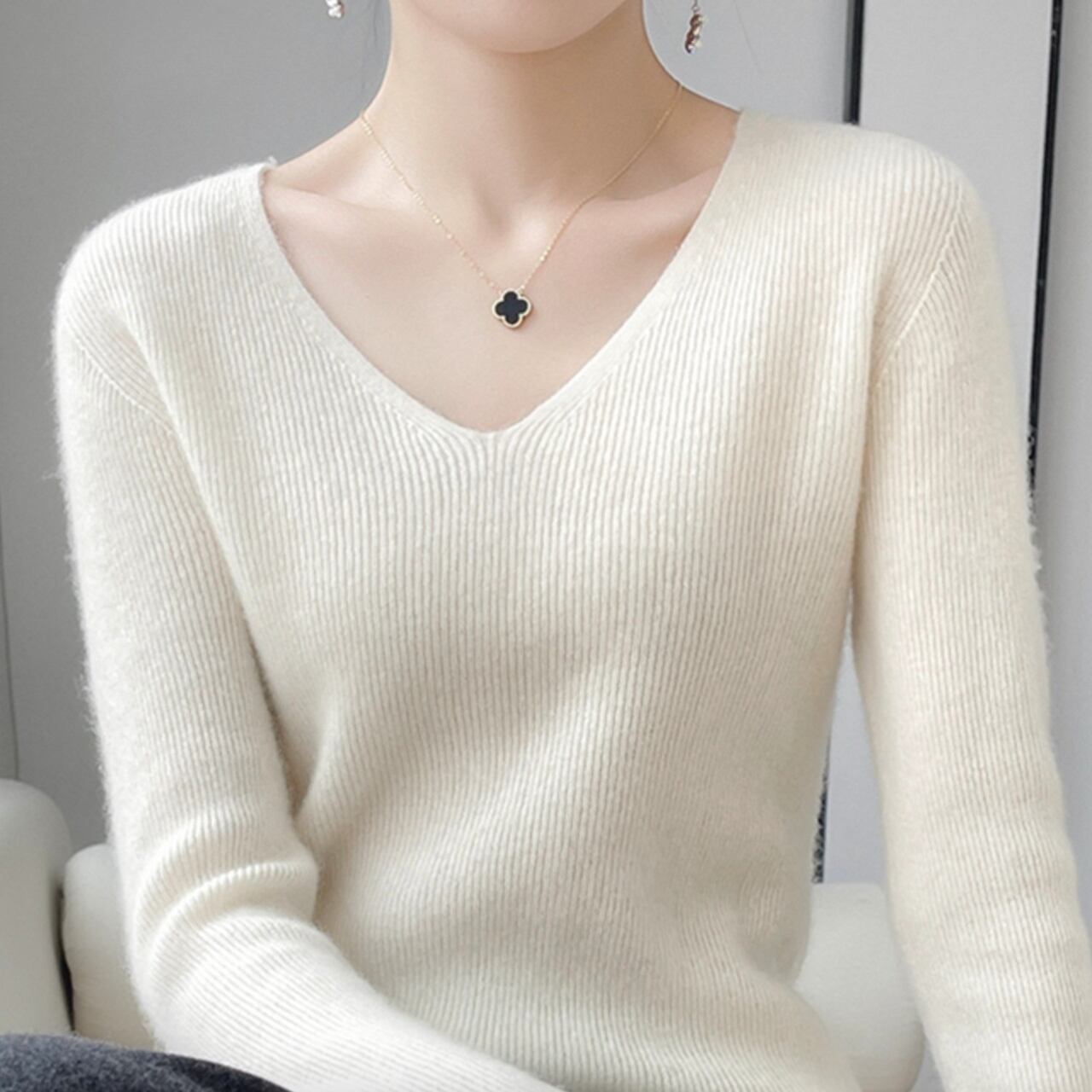 Vネック ニットプルオーバー N013