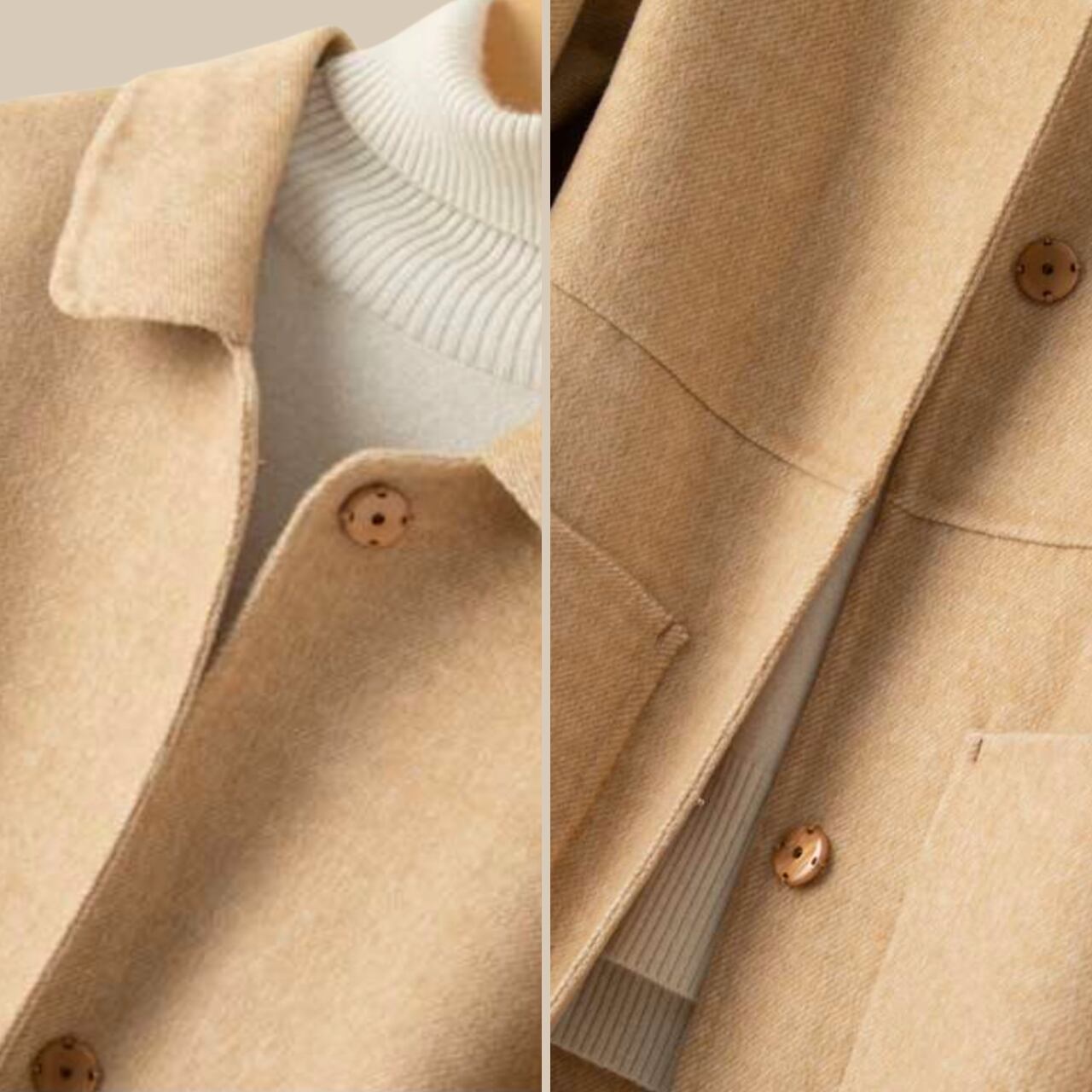 アウターとして着用する設計ですが、ウール素材に敏感な方は、インナーを合わせての着用をおすすめいたします。